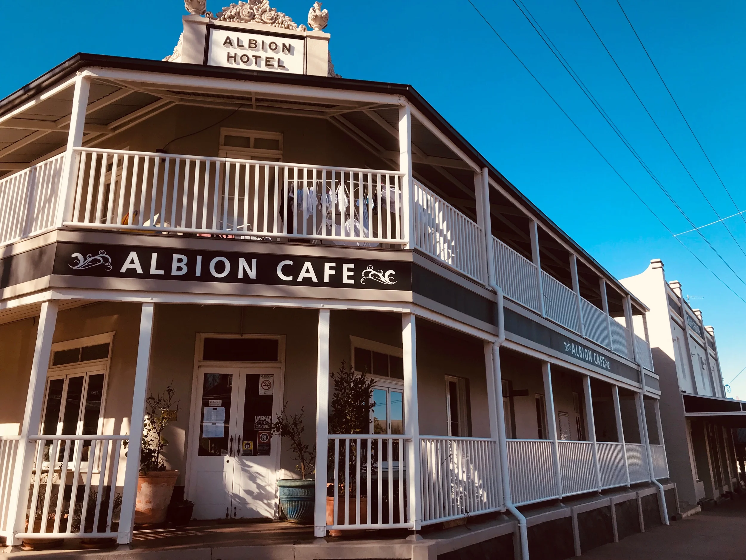 The Albion Hotel is a classic example of NSW country town architecture. The yellow building sits on the corner of the main street and Duncan Street, where you will find the busy café beyond the wrap-around verandah.