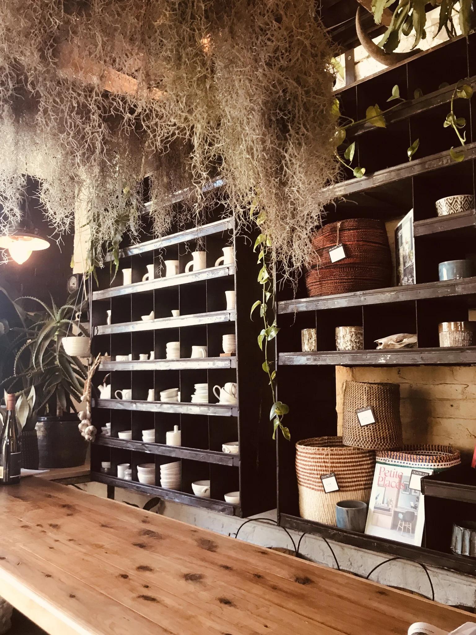 Every plant lovers dream. Not only does this rustic shack serve damn good coffee, but it’s bursting with fresh flowers and greenery from all corners. A huge water feature sits at the entrance surrounded by pot plants. A long wooden bench offers seating underneath tall shelves full of ceramics, baskets, books and homemade jars of pickles.