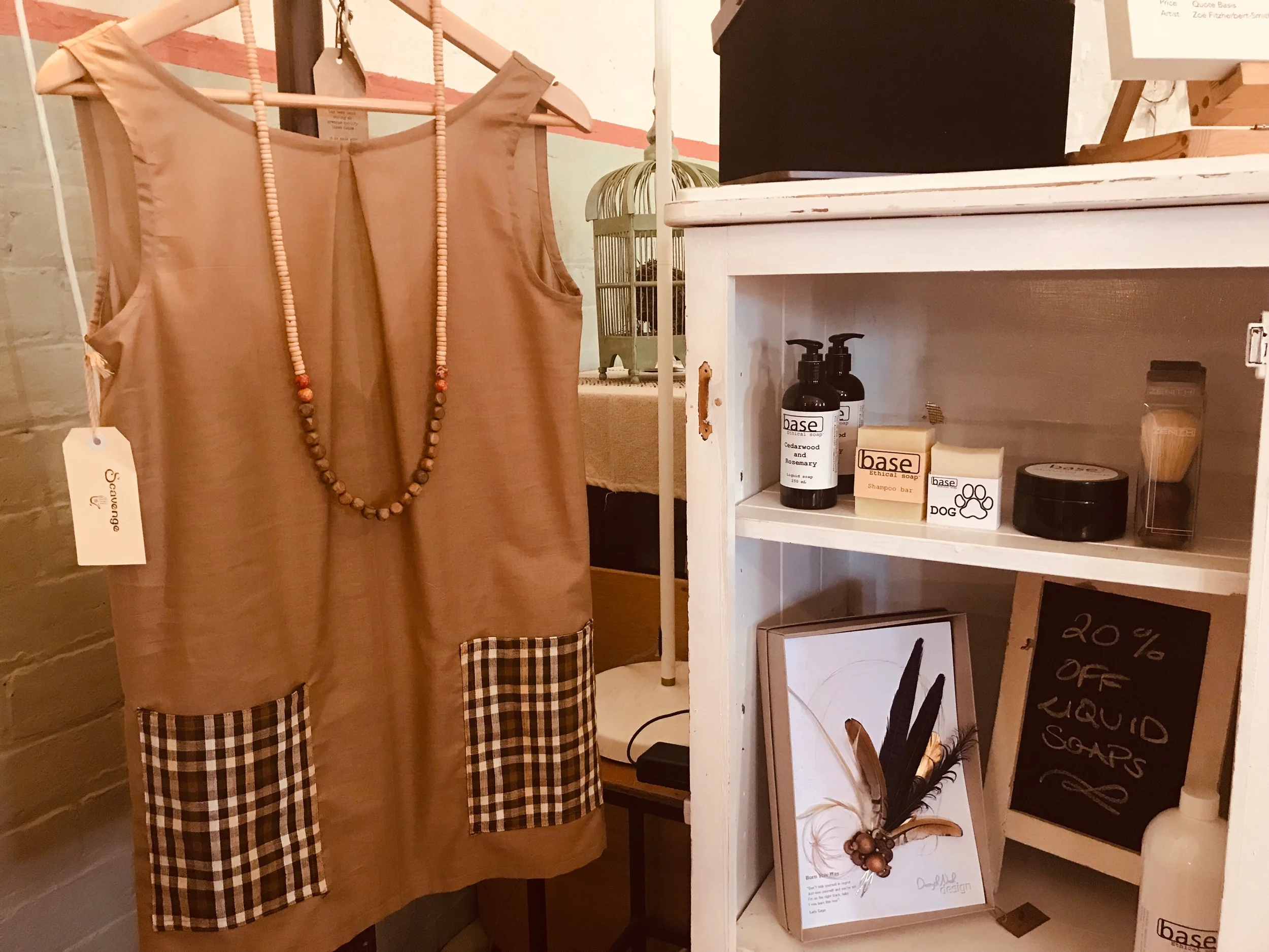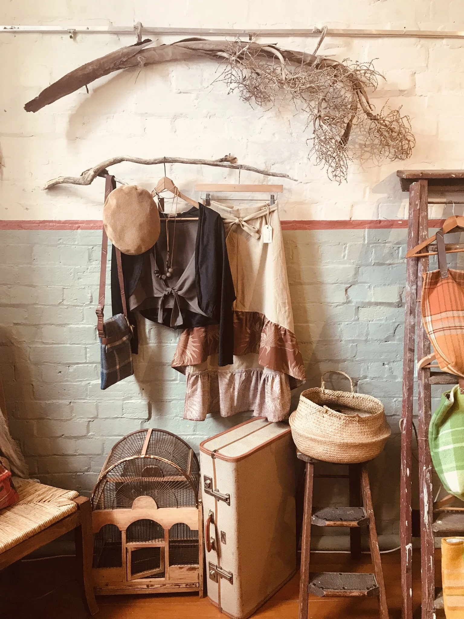 The twin staircase leads up to the main hall that sits beyond rustic draped lace curtains. It’s like stepping into a world of wonder. Handmade clothes, bags, jewellery, art, felt creations, baskets, furs, pottery, soaps, hats and wall decorations are just some of the special items that you will find inside.